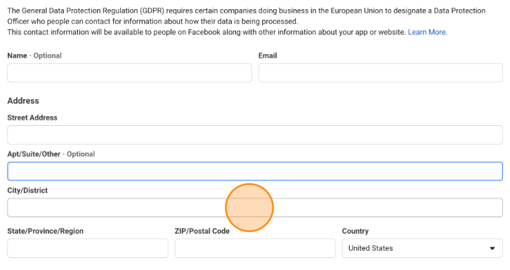 - Next, enter your business name or email, address, city, and zipcode under “Data Protection Officer contact information“.