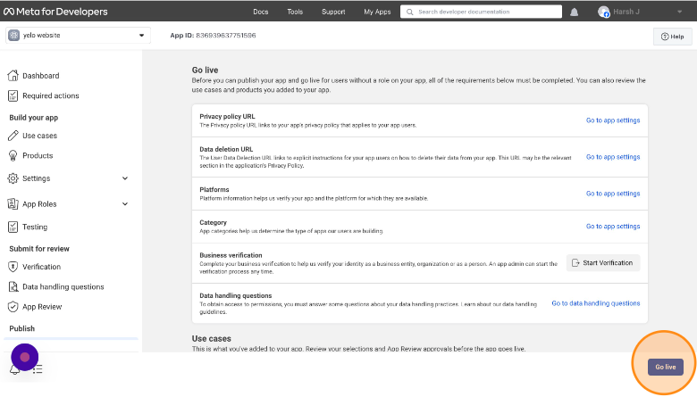 - On the Go Live page, click on “Go Live” button and voila your app is created.